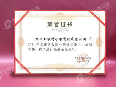亚联财小额贷款荣获2021年金融业“统计先进企业”称号