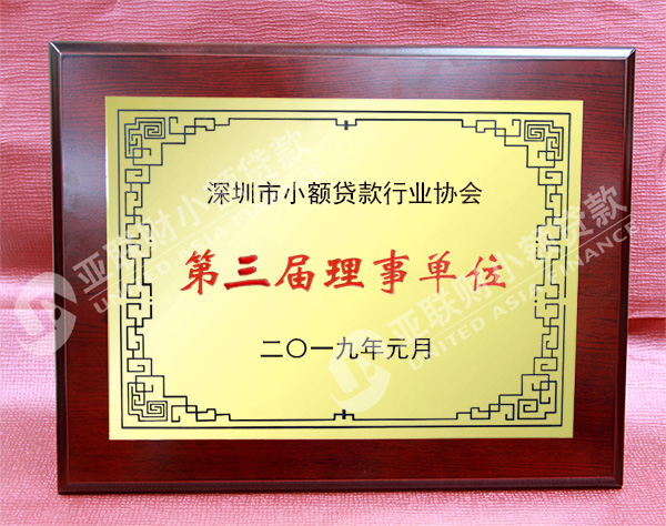 「亚联财小额贷款」连续三届获选为深圳市小额贷款行业协会理事单位